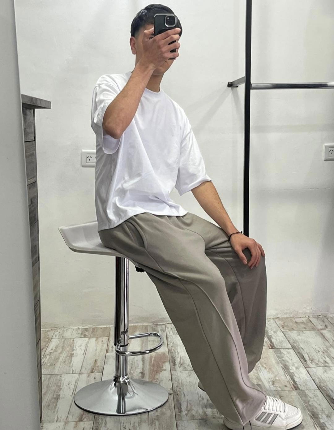La prenda básica que no puede faltar: corte boxy fit oversize, color gris melange lavado súper combinable.