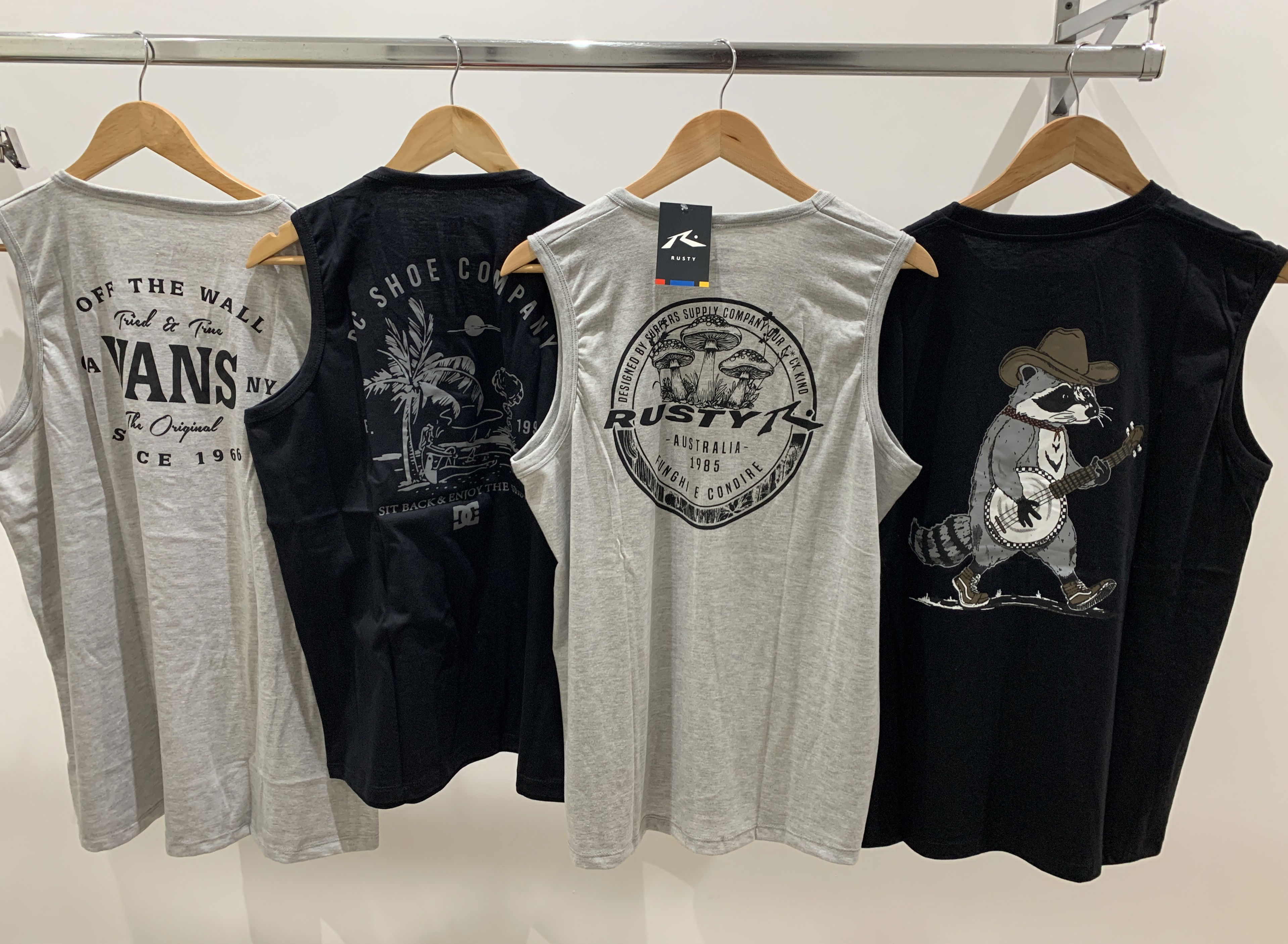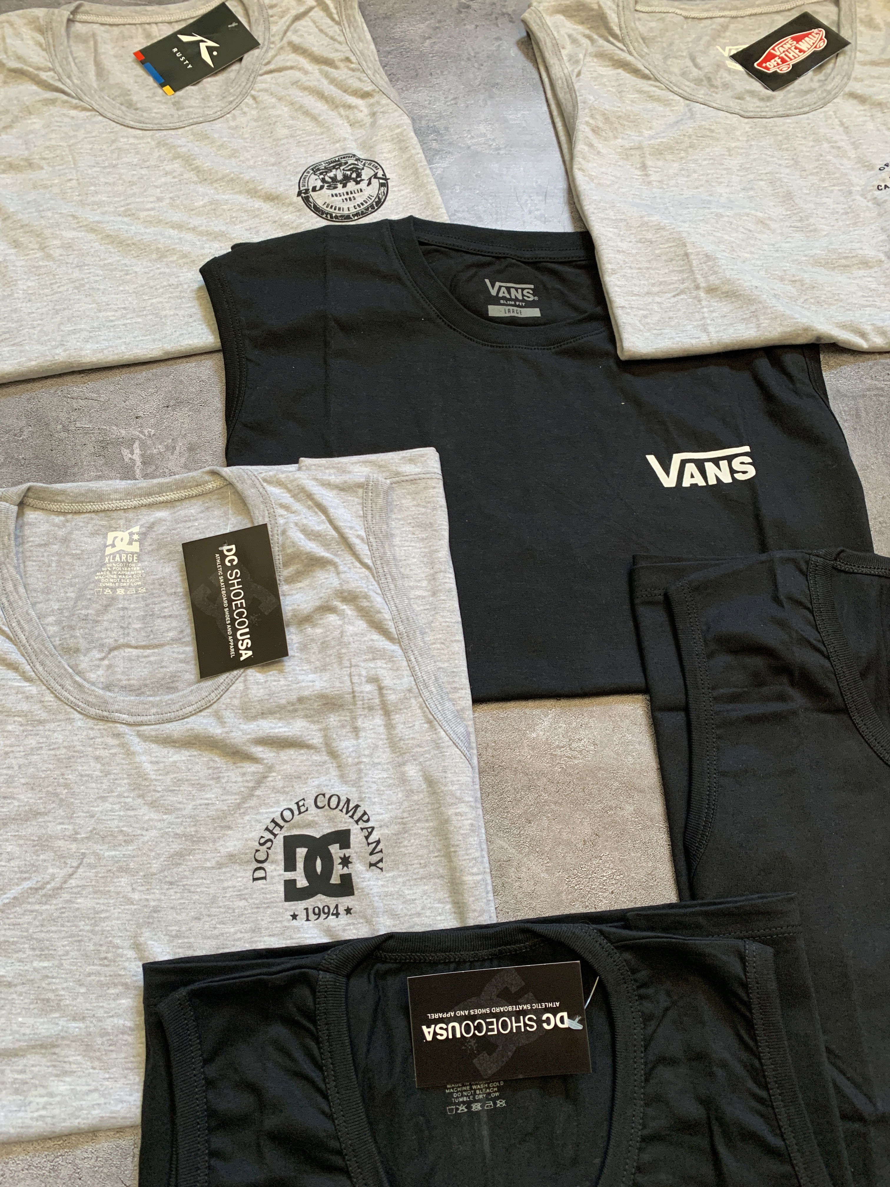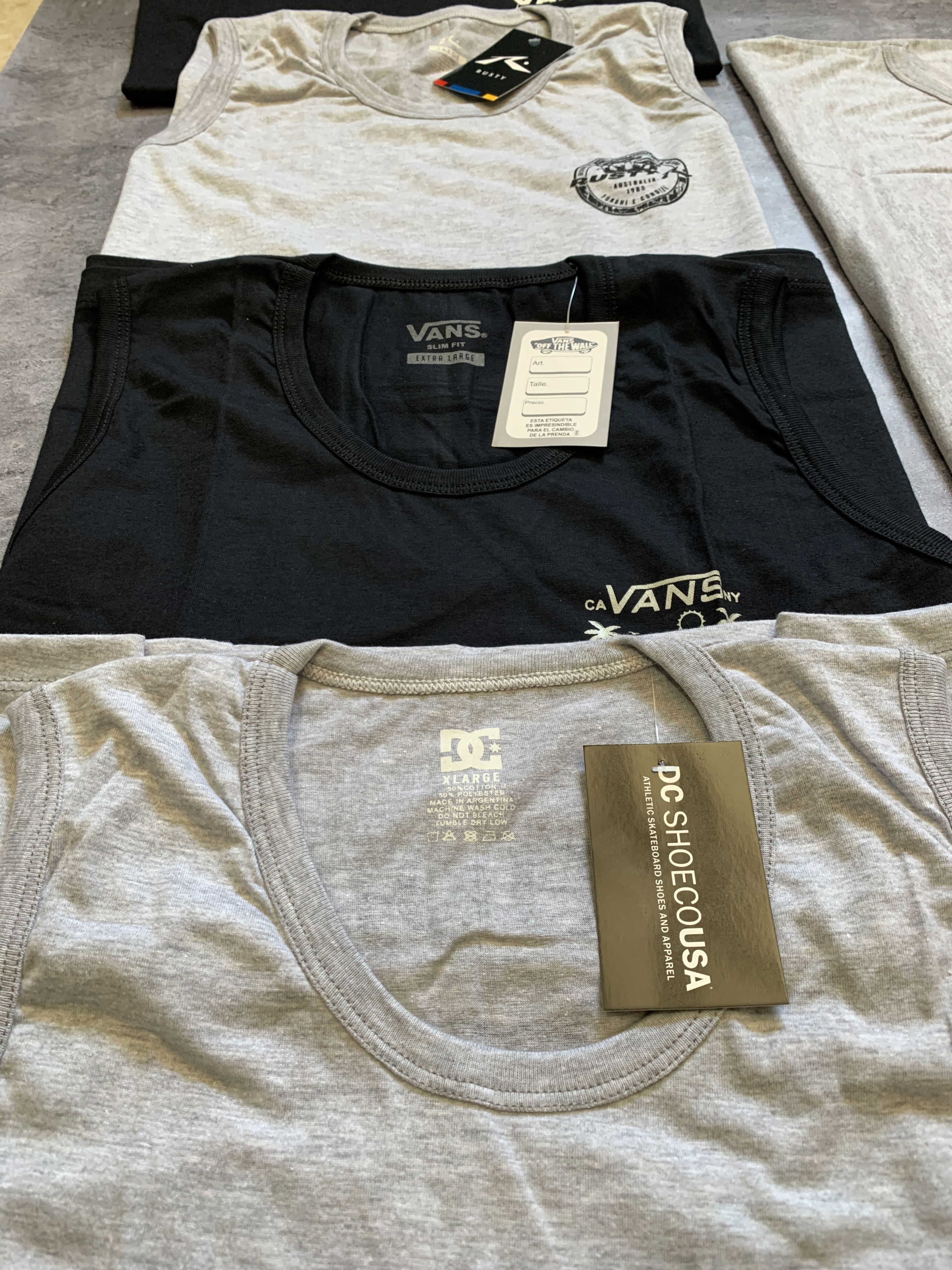 Modelos con doble estampado moderno de marcas estilo DC, VANS y RUSTIK, ideales para tiendas urbanas y de tendencia.